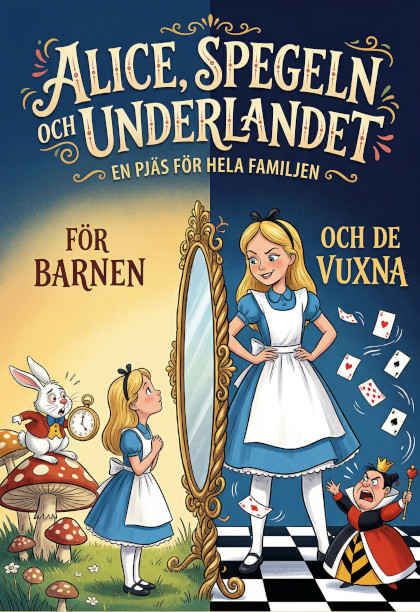 Välkomna till en unik teaterupplevelse där Underlandet möter Spegellandet! I denna bearbetning av Lewis Carrolls klassiker bjuds barnen på ett färgstarkt och roligt äventyr, medan den vuxna publiken kan njuta av existentiella tankenötter och dolda guldkorn. Manuset erbjuder ett innovativt kreativt grepp där rollen som Alice kan delas av två skådespelare – en kort och en lång – för att visuellt gestalta hur hon växer och krymper i maktkampen mot Underlandets galna invånare. Pjäsen har en tydlig dramaturgisk röd tråd och levereras komplett med färdig originalmusik (singback-bakgrunder).