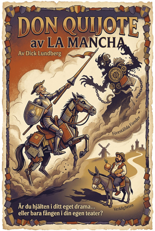 Alla bygger vi identiteter och hoppas att omvärlden ska gå på dem. Don Quijote tar det steget längre. Han förvandlar en grå vardag till ett heroiskt äventyr för att slippa möta tomheten på insidan. Men när hans inre demoner får formen av väderkvarnar, inser både han och väpnaren Sancho att de största jättarna är de vi bär med oss själva. En modern, humoristisk och djupt berörande tolkning av världens mest kända galning. För som Sancho säger: ’Det börjar bli kallt att bara vara människa’.